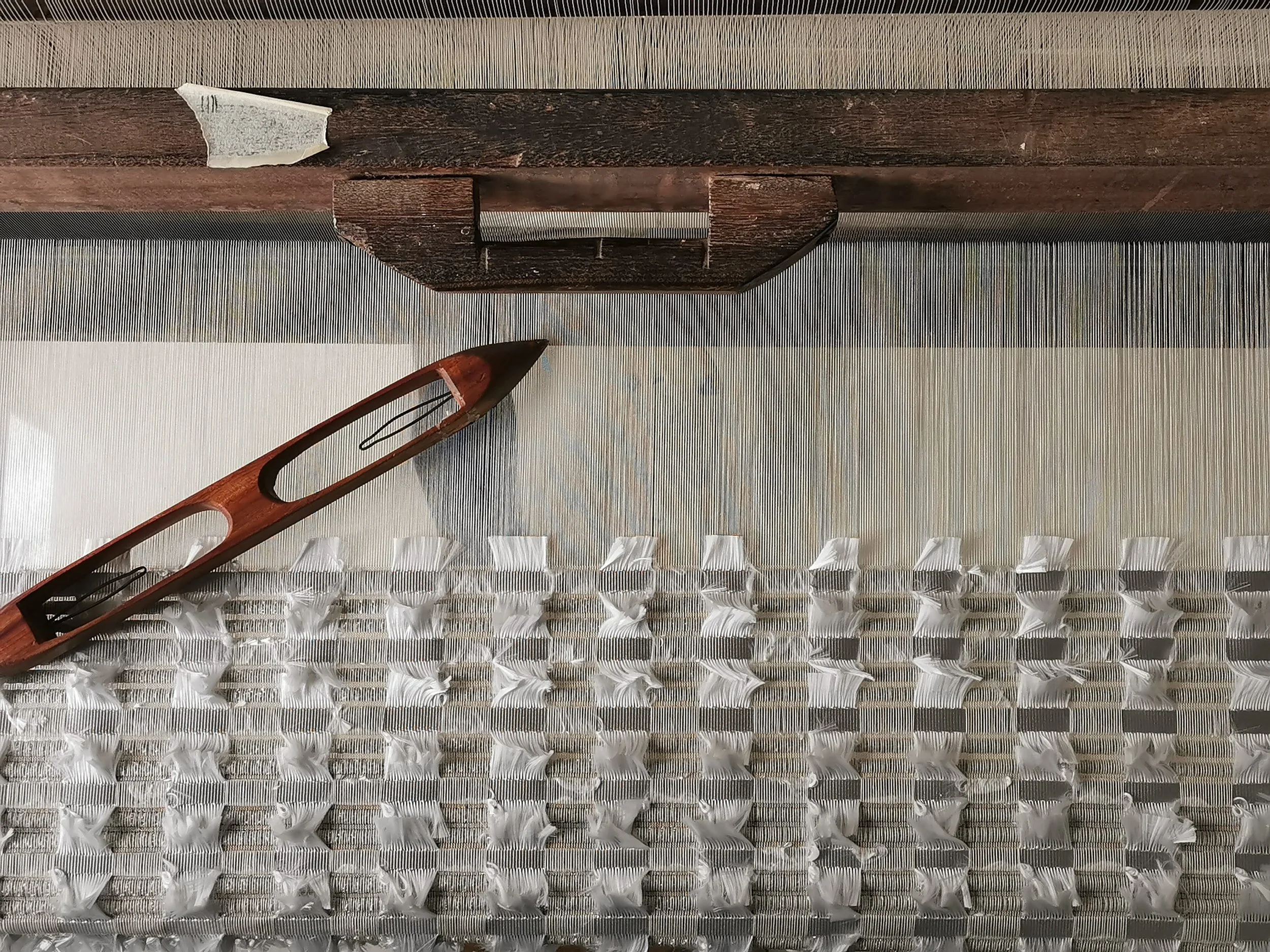 Now it sits on a handloom, ancient wood, and patient hands, and the shuttle crosses like a horse crossing water, steady, unhurried, sure of where it's going even if the river isn't.