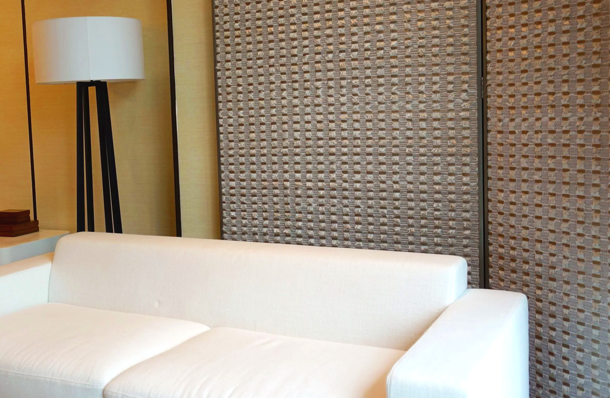 The one that stands. Tighter weave, quiet backbone, a surface with posture. It remembers being a seatbelt. It remembers how to hold. But now it holds a room together instead of a stranger.